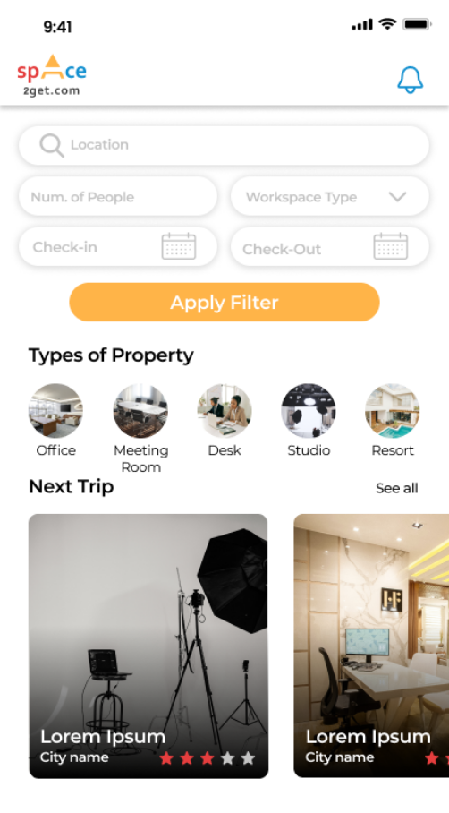 Kunden können über Space2Get-Plattform einen Besprechungsraum, einen Konferenzraum, einen Büroraum, einen Arbeitsplatz, einen Co-Working-Space oder die gesamte Immobilie mieten.